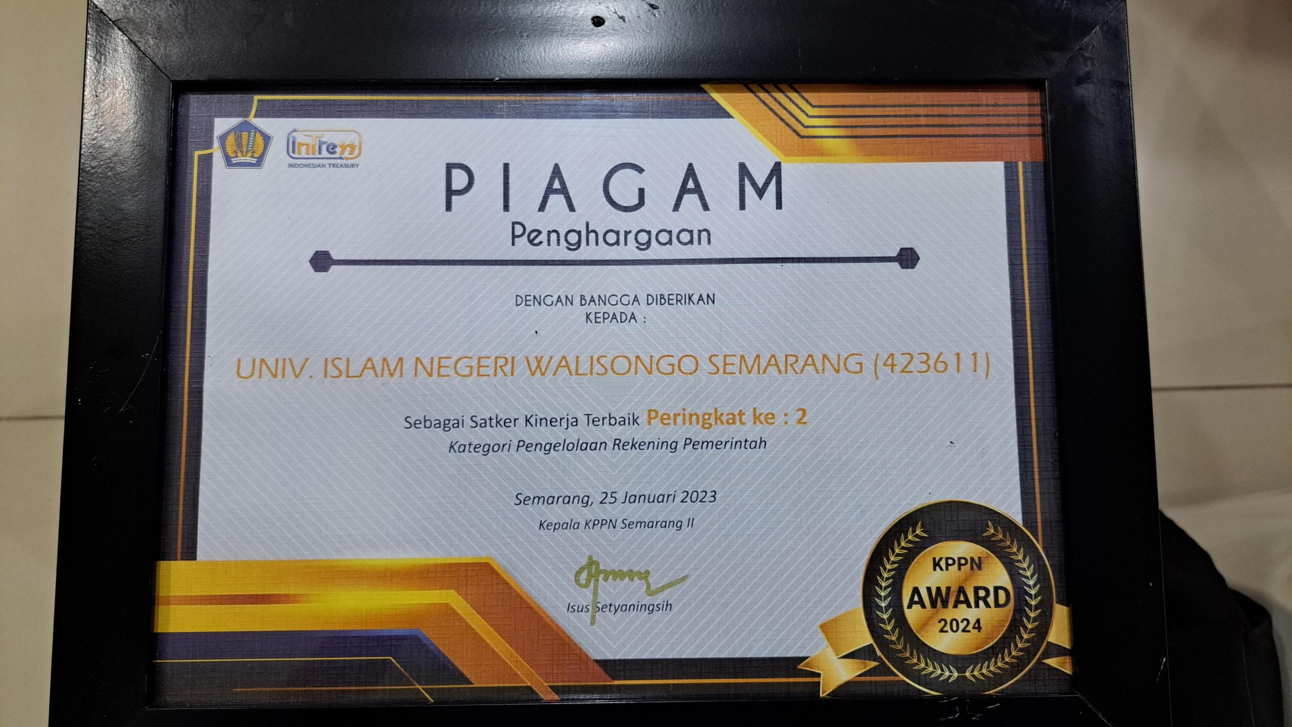 UIN Walisongo Online, Semarang – UIN Walisongo kembali menorehkan prestasi dengan menerima KPPN Award sebagai Peringkat kedua Kategori Pengelolaan Rekening Satker Terbaik. Penghargaan ini diserahkan dalam acara KPPN Award yang dilaksanakan Kamis (25/1/2024) di Aula Pelayanan Perbendaharaan Negara (LKKPN) Semarang. KPPN Semarang II Award 2024 ini merupakan bentuk apresiasi pengelolaan keuangan dari KPPN pada Satuan...Read More