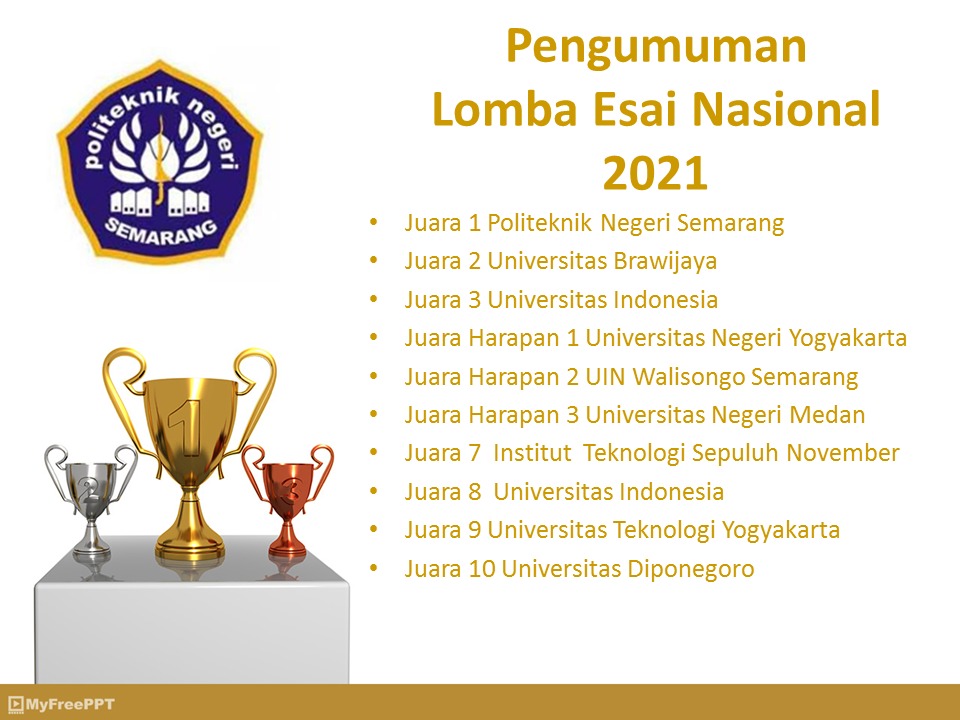UIN Walisongo Online, Semarang – Mahasiswa Prodi Akuntansi Syariah UIN Walisongo kembali mengharumkan nama kampus dengan meraih Juara Harapan 2 dalam Lomba Esai Nasional 2021. Kegiatan ini mengangkat tema “Peran Generasi Muda sebagai Agent of Change dalam Mengoptimalkan Sumber Daya di Era New Normal yang diselenggarakan oleh UKM Koperasi Mahasiswa Bahtera Manunggal Politeknik Negeri Semarang...Read More