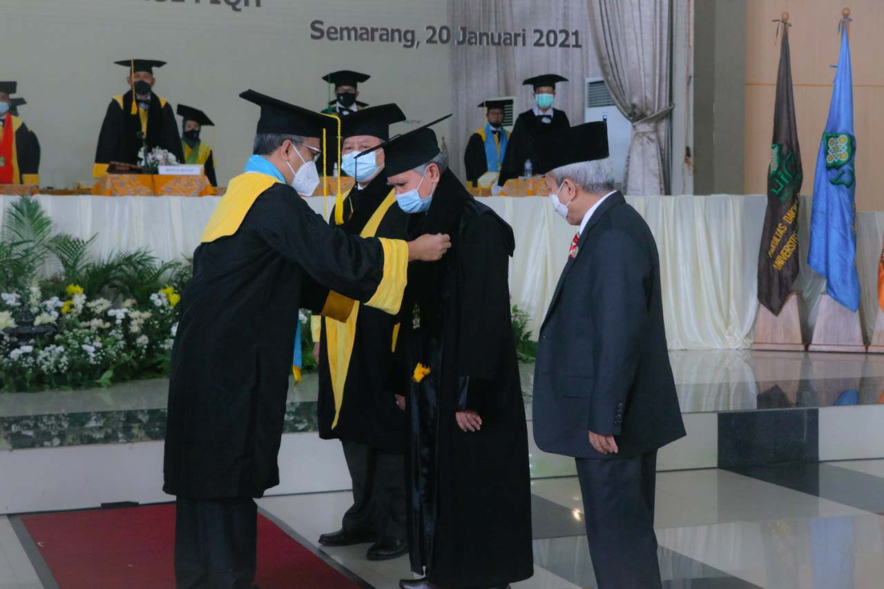 UIN Walisongo Online, Semarang – Universitas Islam Negeri Walisongo Semarang menganugerahkan gelar kehormatan doktor honoris causa kepada Drs. K.H Afifuddin Muhajir, M.Ag. Dengan menerapkan protokol kesehatan ketat, penyerahan gelar doktor kehormatan dilakukan melalui proses sidang terbuka di Aula II Kampus III UIN Walisongo Semarang, Ngaliyan, Semarang, Rabu (20/01/2021). Pemberian gelar doktor honoris causa kepada Kiai...Read More