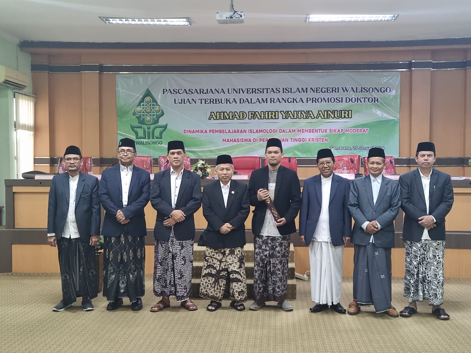 UIN Walisongo Online—Kota Semarang. Ahmad Fahri Yahya Ainuri berhasil secara resmi menyandang gelar Doktor Bidang Studi Islam dari Pascasarjana UIN Walisongo Semarang. Gelar tersebut resmi disandangnya setelah mempertahankan disertasi dalam ujian terbuka promosi doktor. Fahri mempertahankan disertasi berjudul “Dinamika Pembelajaran Islamologi dalam Membentuk Sikap Moderat Mahasiswa di Perguruan Tinggi Kristen (Studi Kasus di Universitas Kristen...Read More