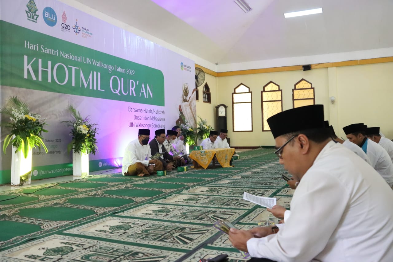 UIN Walisongo Online, Semarang – Menyambut Hari Santri Nasional tahun 2022, UIN Walisongo menggelar Khotmil Qur’an bersama Hafidz/Hafidzah, Mahasiswa, dan Dosen. Kegiatan digelar di Masjid Walisongo Kampus 3 UIN Walisongo Semarang pada Jum’at, (21/10/2022). Hadir sekaligus memberikan sambutan, Wakil Rektor Bidang Akademik dan Pengembangan Kelembagaan Prof Dr Mukhsin Jamil, M Ag. Dalam sambutannya Prof...Read More